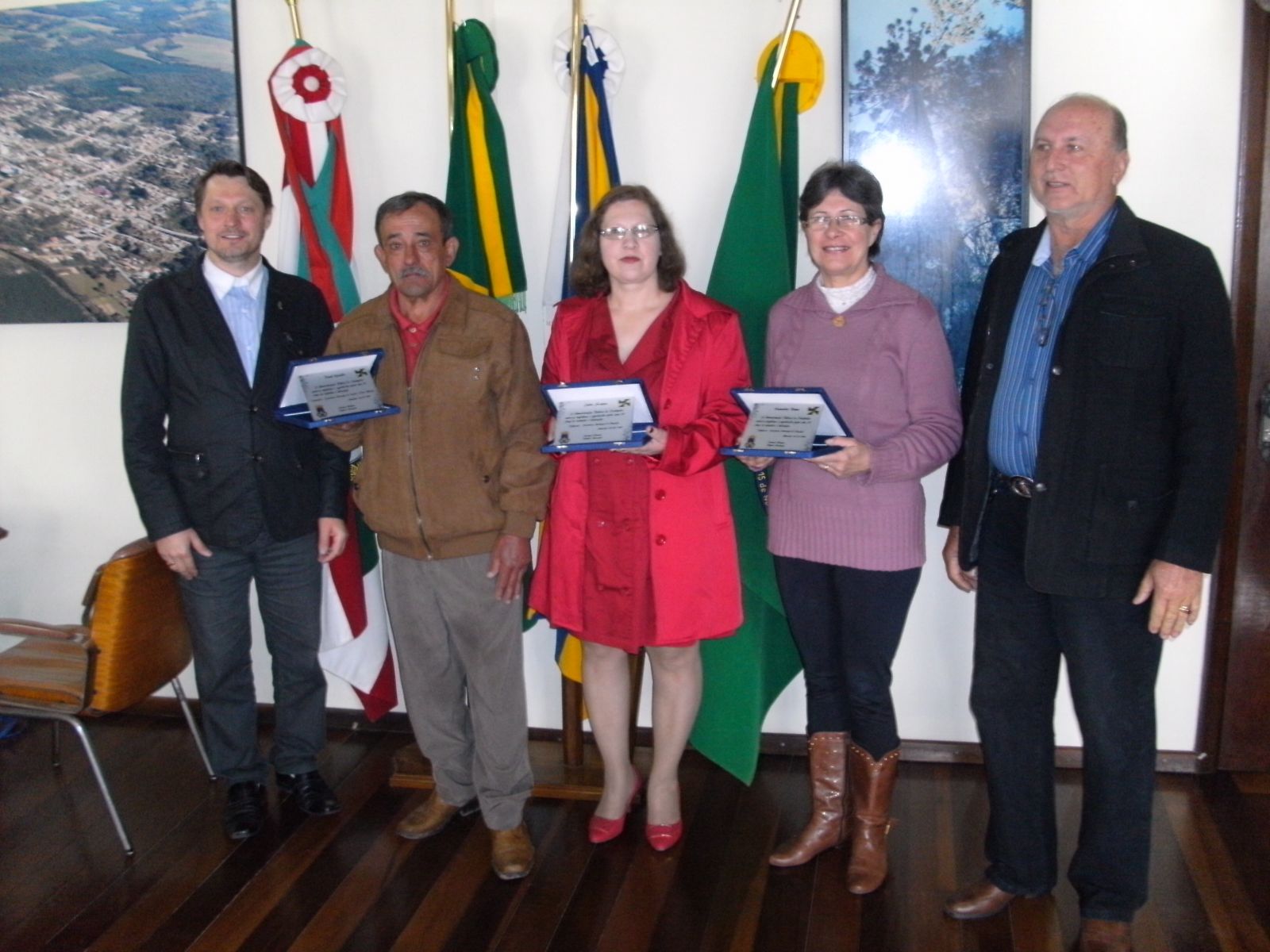 Dentre os homenageados estavam o servidor da Secretaria de Viação e Obras Davi Geraldo e as professoras Hannelore Blume e Judite Screpec. O funcionário David se emocionou com a homenagem realizada pelo poder Executivo. Cada um dos homenageados recebeu uma placa de prata registrando os 25 anos de dedicação e trabalho frente à prefeitura para bem atender ao cidadão.
